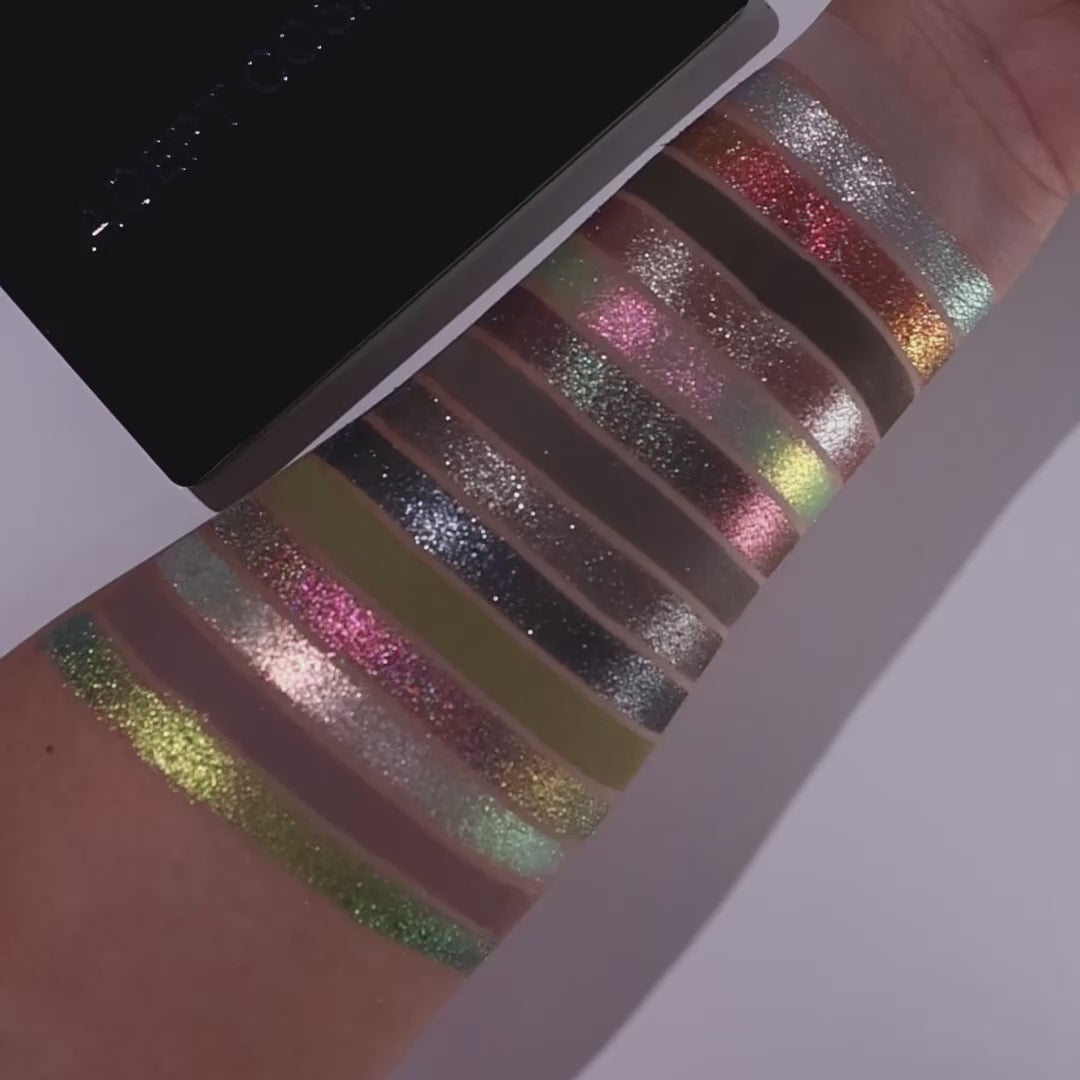 - Contains exceptionally sparkly shades that may resemble glitter, due to the high concentration (over 60.2%) of large-particle chameleon pearls. There are 5 buildable and blendable matte shades included to compliment your look.